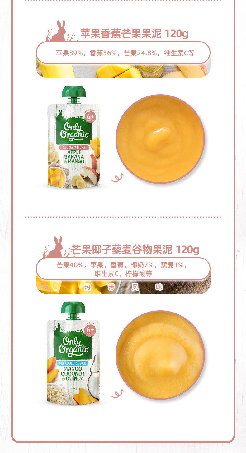 Only Organic 6个月+婴儿果泥 苹果+香蕉+芒果 120g
