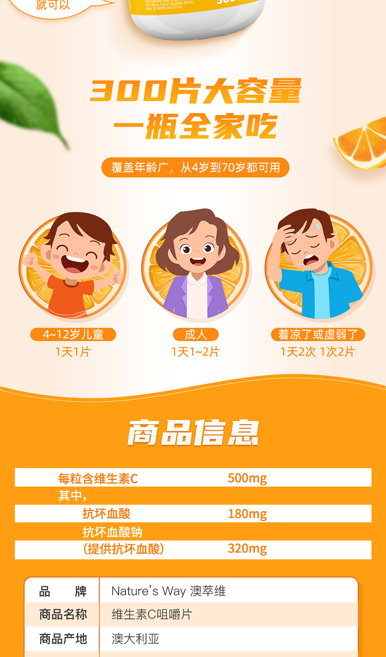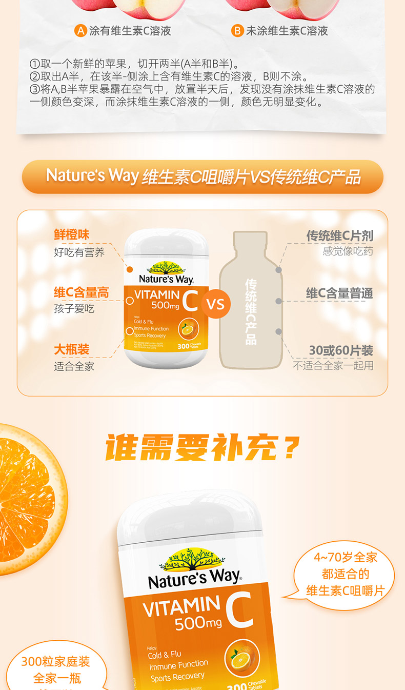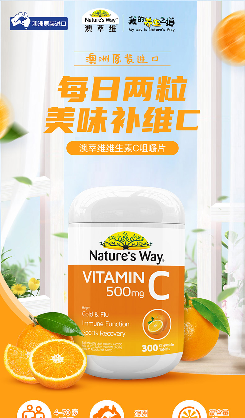 > Nature's Way 澳萃维 无糖维生素C咀嚼片 300粒